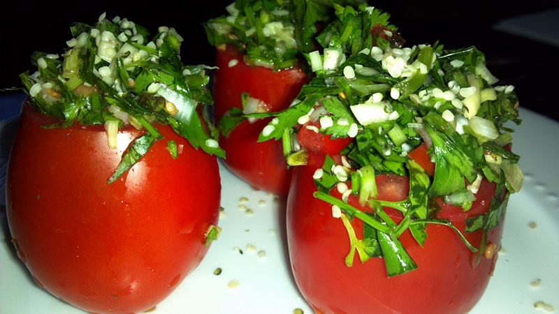 2013-06-16_17-09-39_181 Previous Next Published June 16, 2013 at 800 × 450 in Tabouli Stuffed Tomatoes