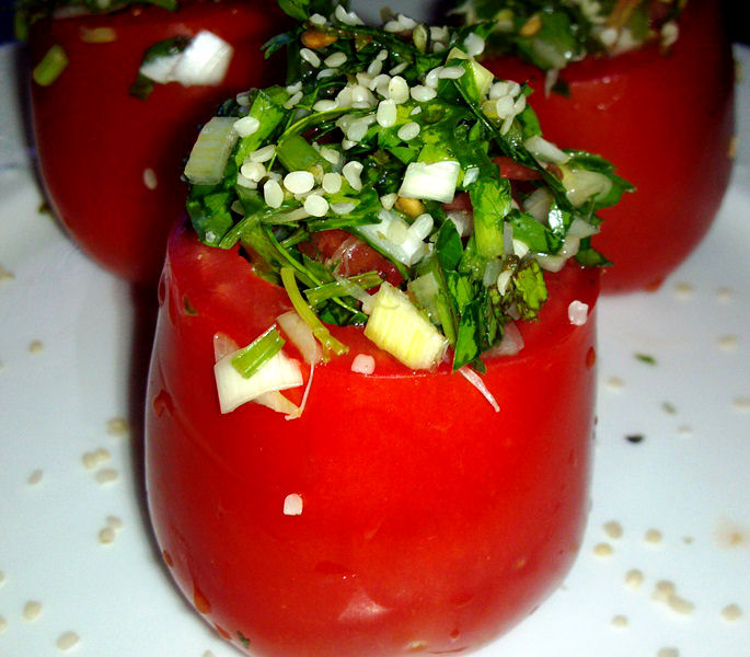 2013-06-16_17-10-14_952 Previous Next Published June 16, 2013 at 685 × 600 in Tabouli Stuffed Tomatoes