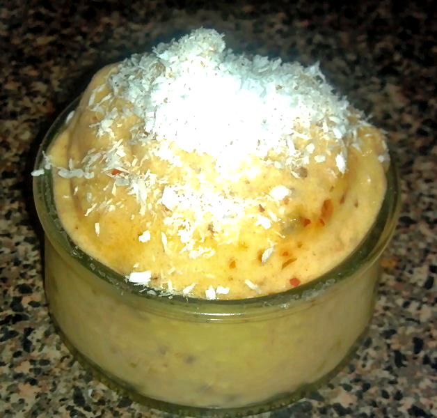 And that’s it! Spoon it out, top with shredded coconut, bananas, fresh peaches, whatever, and eat it! So good, simple and easy!