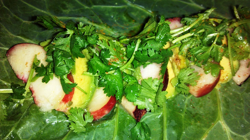 And there you have it! A wonderful collard green wrap! It tastes sooo good and refreshing!
