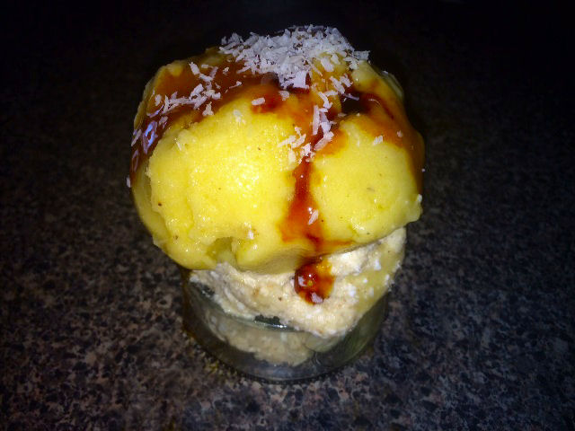 Another great cruelty-free, natural, healthy ice-cream option, that you can eat for breakfast or lunch! The caramel date sauce at the top is optional, as I have also used maple syrup and coconut nector for toppings. This recipe is simple, easy and delicious! All you need is 3 simple ingredients!