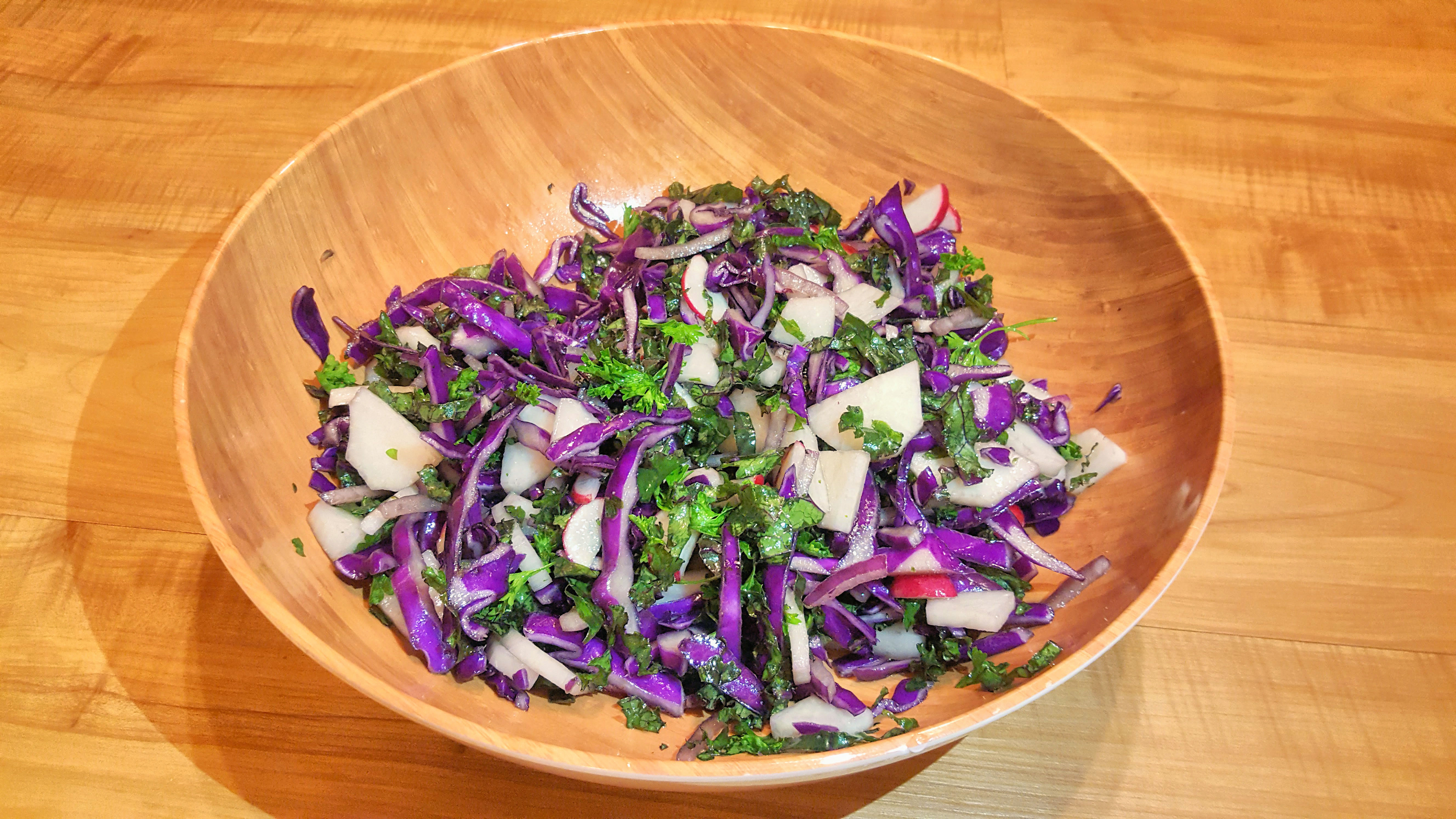 20161019_192954 Previous Next Published November 21, 2016 at 5312 × 2988 in Ukrainian Purple Cabbage and Kale Salad Delicious cabbage salad, ready to eat!