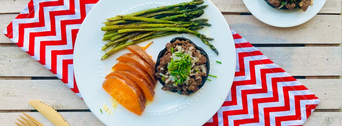 Everything should be done cooking around the same time, but if the sweet potatoes aren’t done yet (it will depend on their size, as the larger they are the longer they will take to cook), remove the stuffed mushrooms from the oven and cover with foil to keep warm while the potatoes cook.