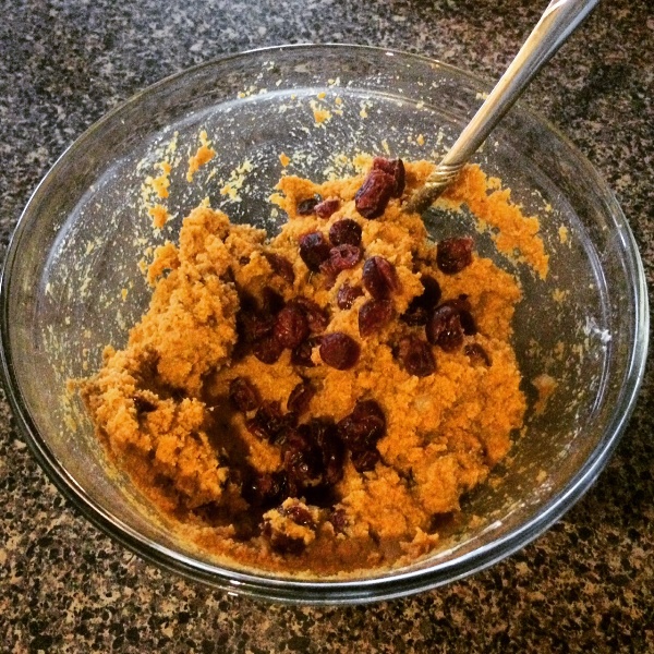 Take your mixture out of the blender and put into a mixing bowl. Add the cranberries in, and fold into the ingredients: