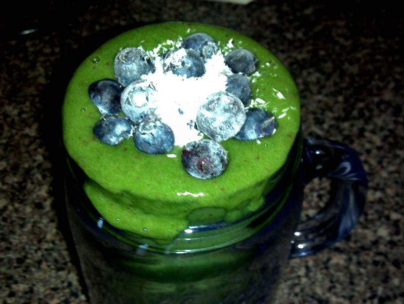Top with fresh or frozen blueberries, coconut or whatever else you have laying around. Enjoy!