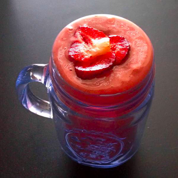 Blend together all the ingredients in the blender. If you used frozen strawberries you may need to add some more water for blending consistency.